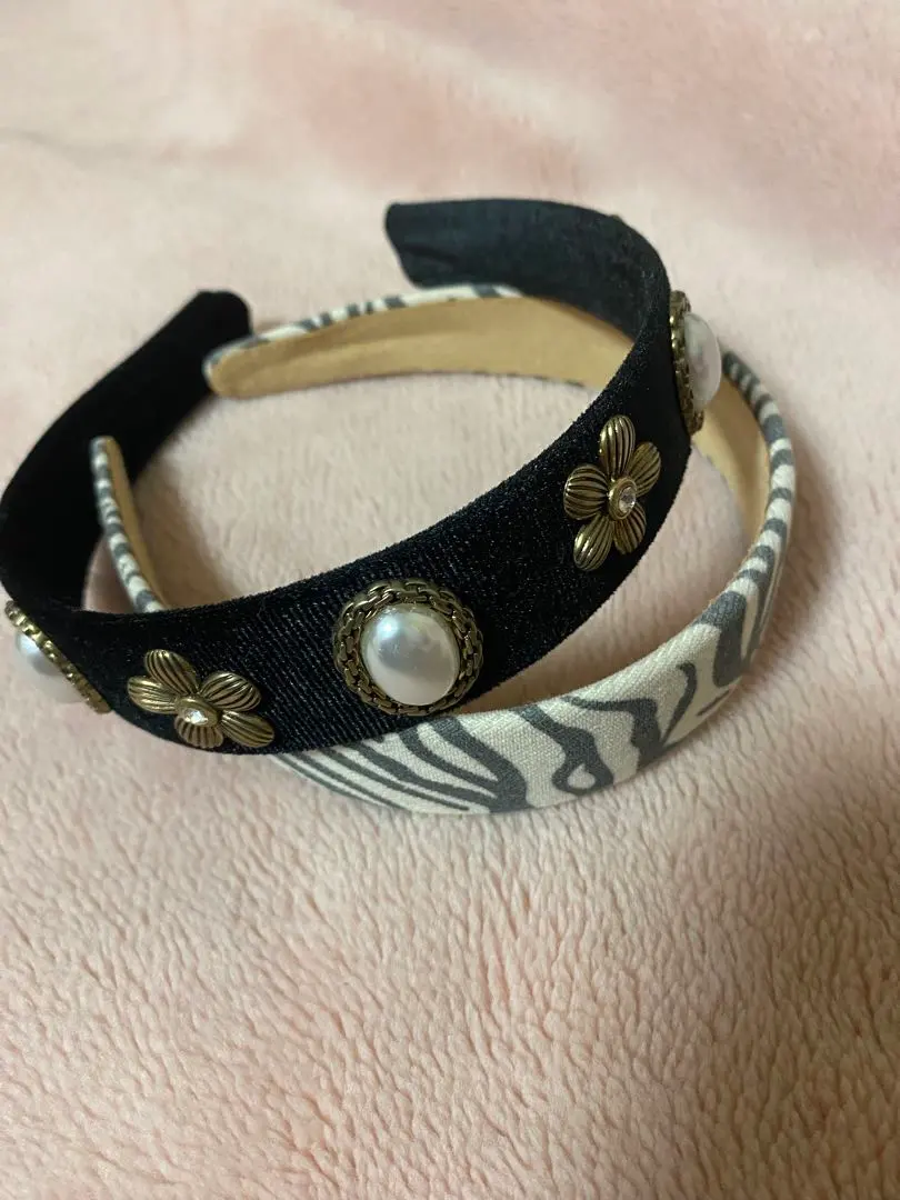 カチューシャセット 黒 花飾り ベロア ゼブラ柄