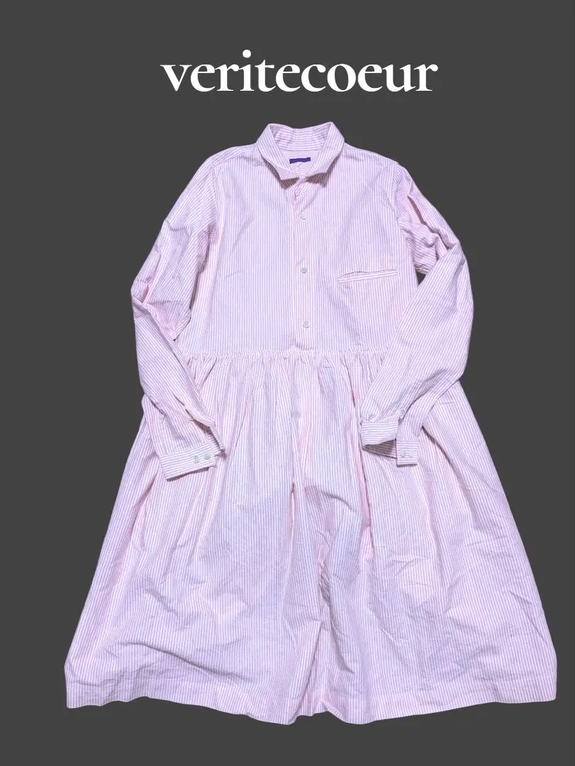 veritecoeur ヴェリテクール ストライプ長袖シャツワンピース