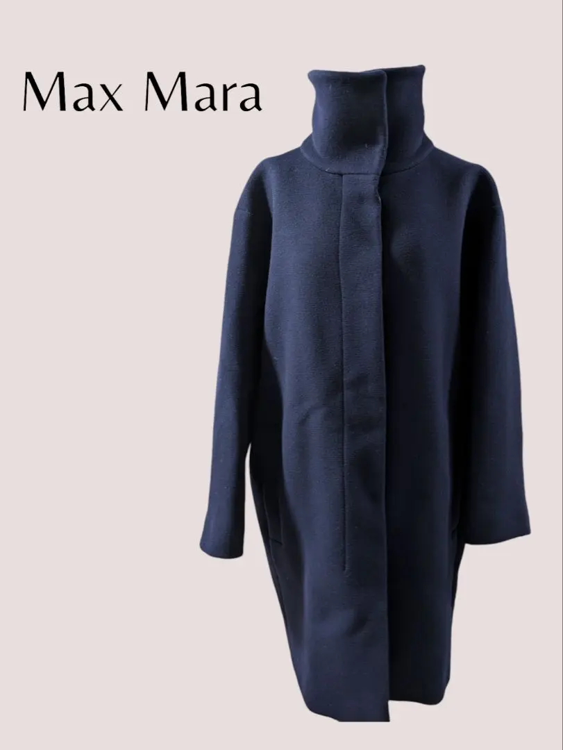 美品 マックスマーラ タートルネック ハイネック コート ネイビー 42