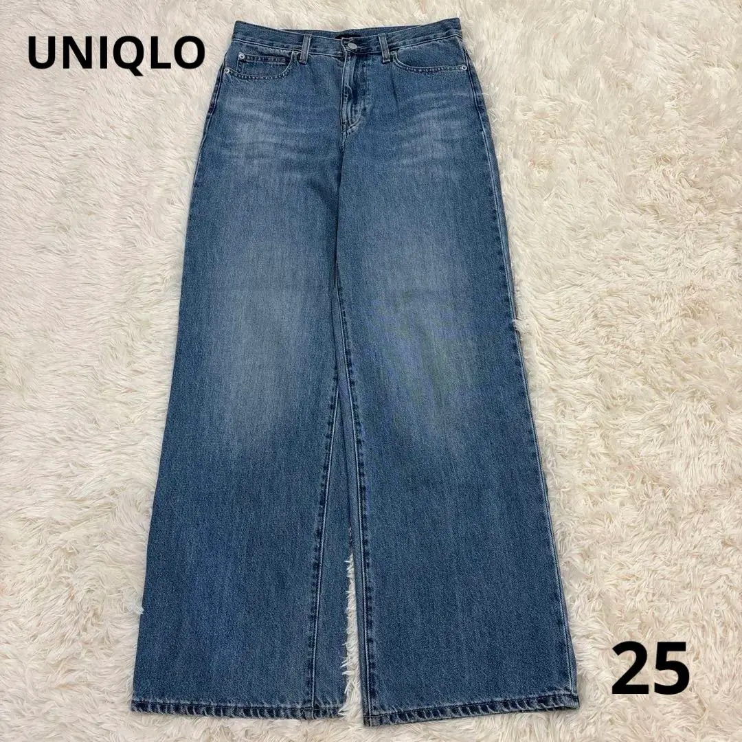ワイドストレートジーンズ ブルー 25 ユニクロ デニムパンツ ハイウエスト