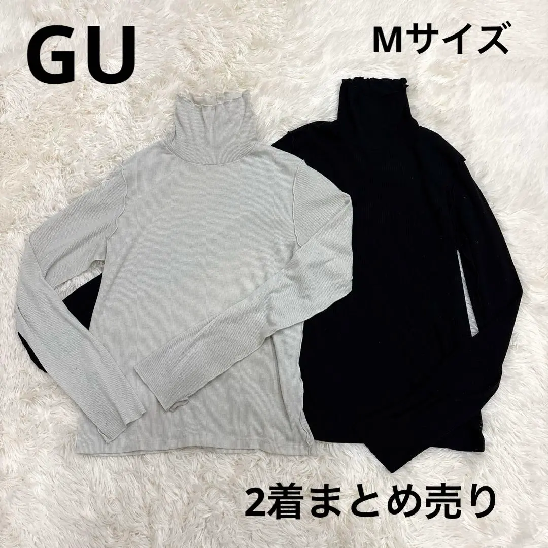GU ソフトリブタートルネックT 長袖 ややゆったり ナチュラル ブラック M