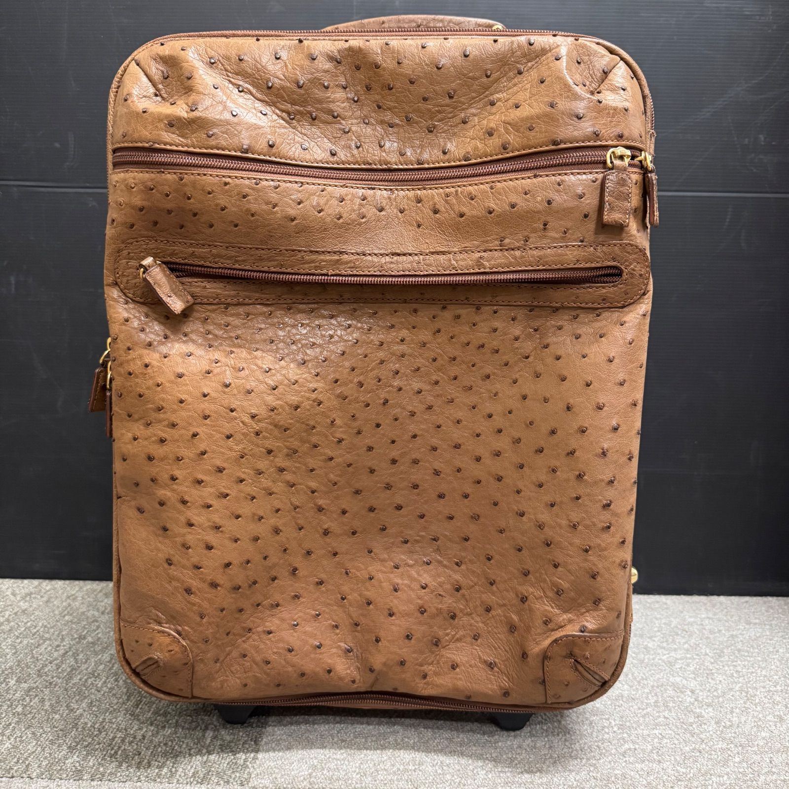 DA557 オーストリッチ 本革 キャリーバッグ 茶 トラベルバッグ スーツケース 旅行カバン