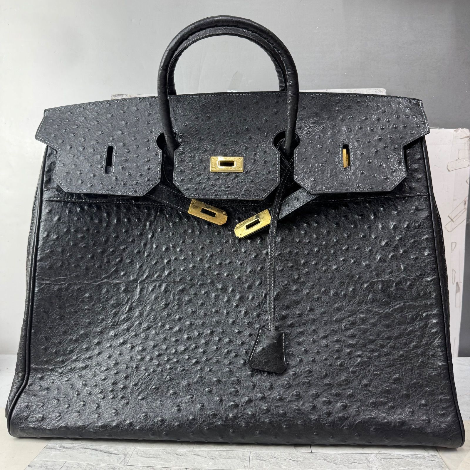 DA558 オーストリッチ ハンドバッグ 黒 ブラック ゴールド金具 希少