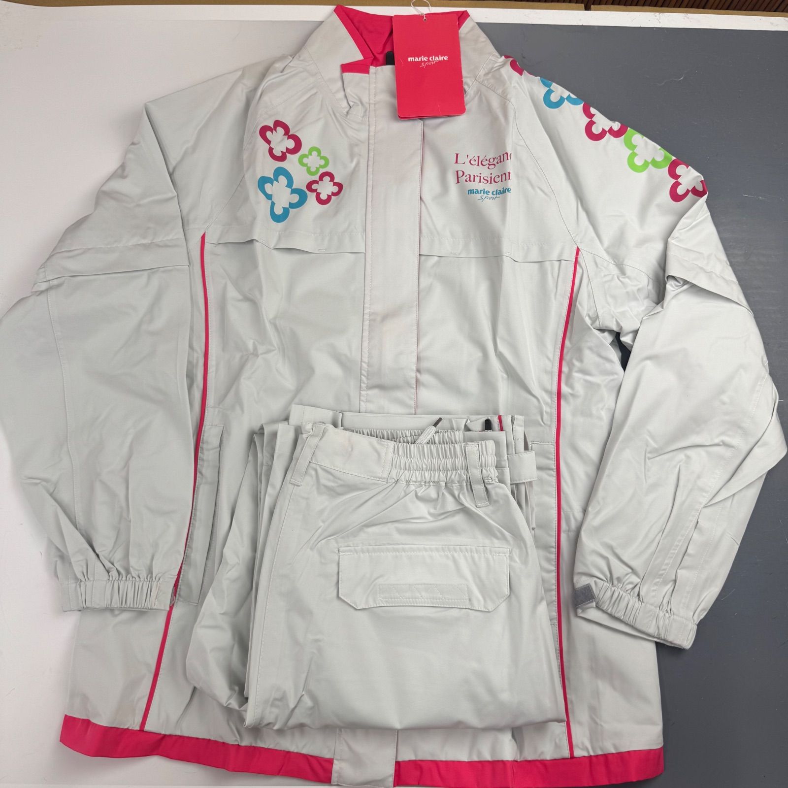 DA569 マリクレール スポーツ レインウェア 上下セット L グレー ゴルフ レディース