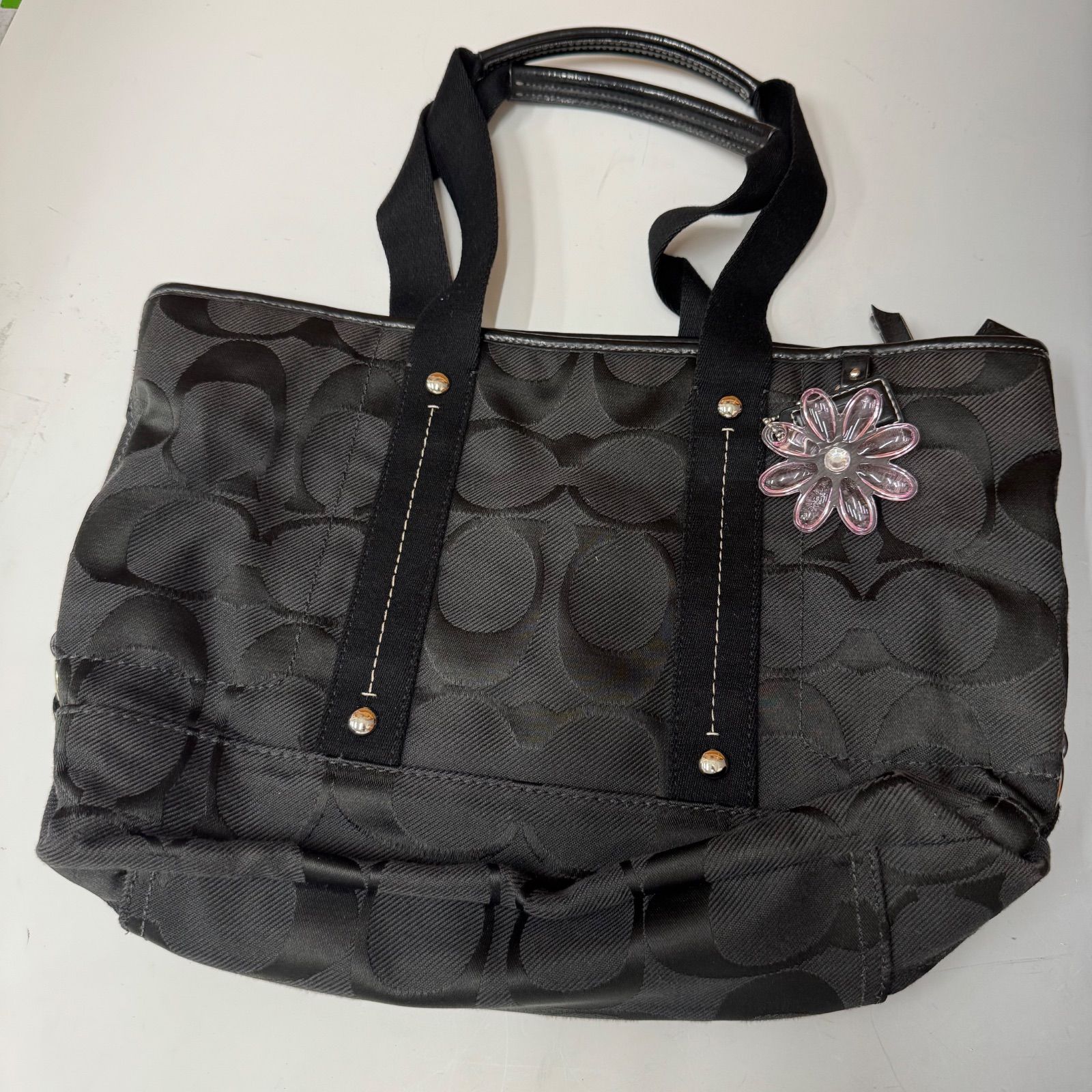 DA572 COACH コーチ トートバッグ シグネチャー 黒 ブラック キャンバス レザー 花 チャーム