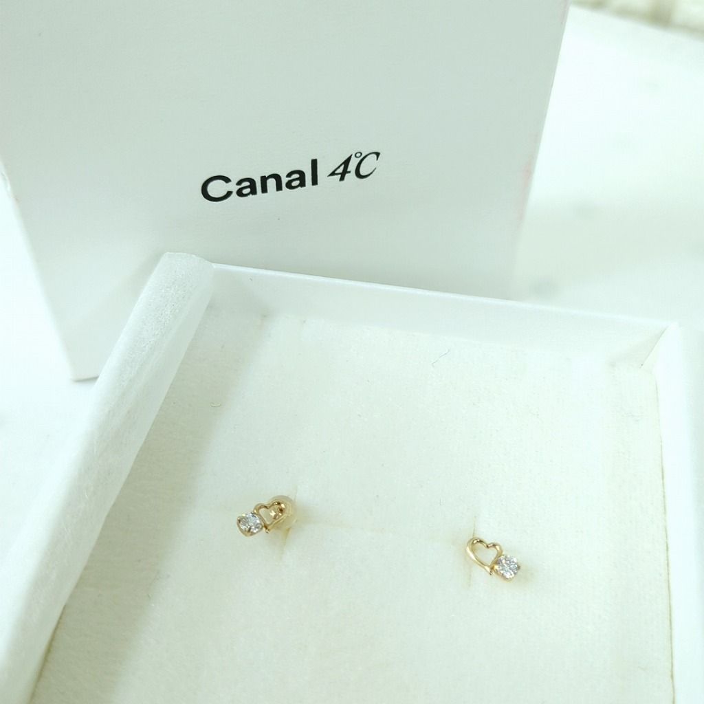 カナル 4℃ Canal K10 イエローゴールド ハート ストーン ピアス