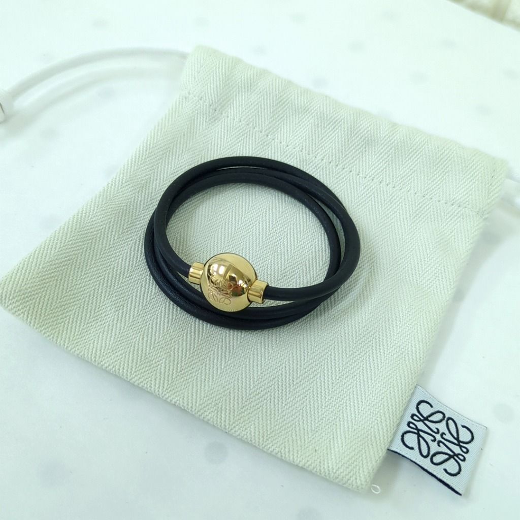 ロエベ アナグラム ペブル 3連 ブレスレット Sサイズ ブラック ゴールド金具