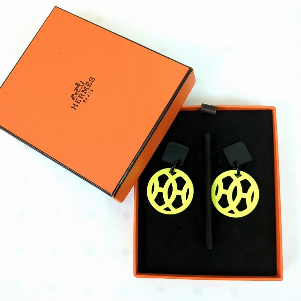 エルメス バッファローホーン アヴァ ピアス パステルイエロー シルバーカラー ベトナム製