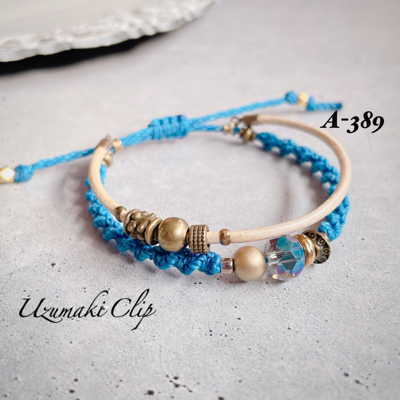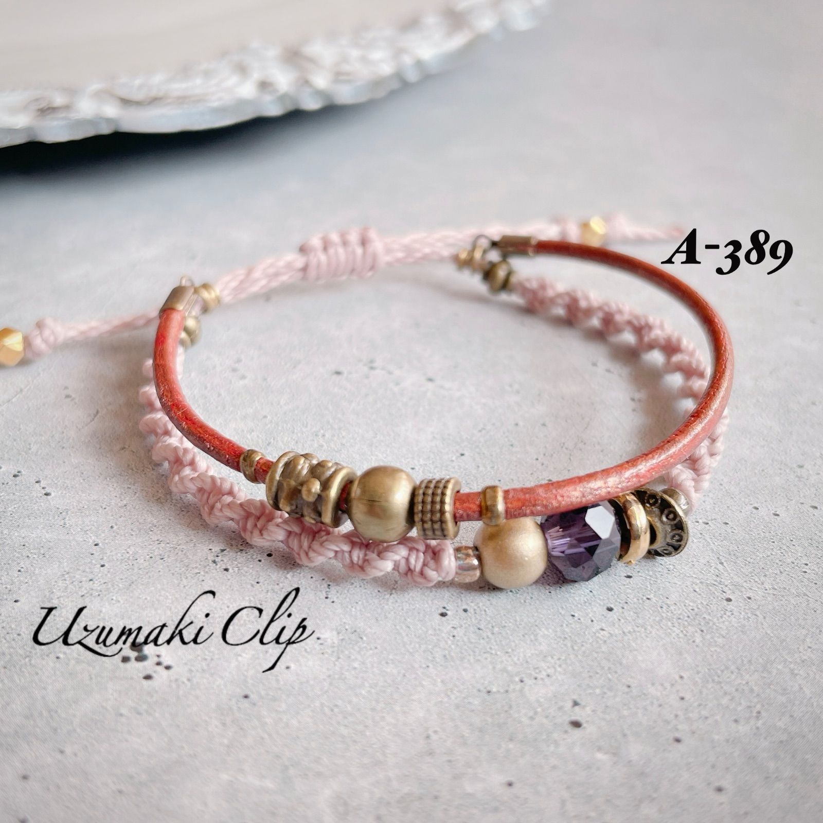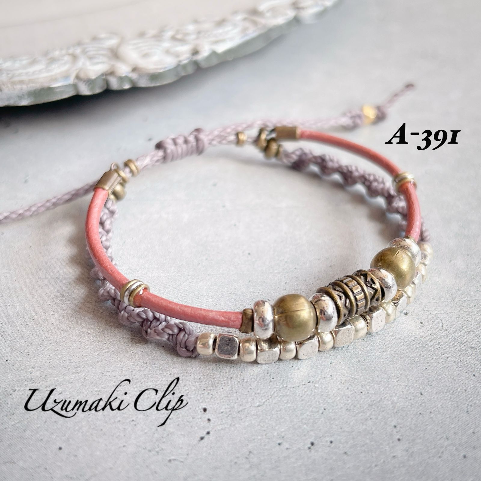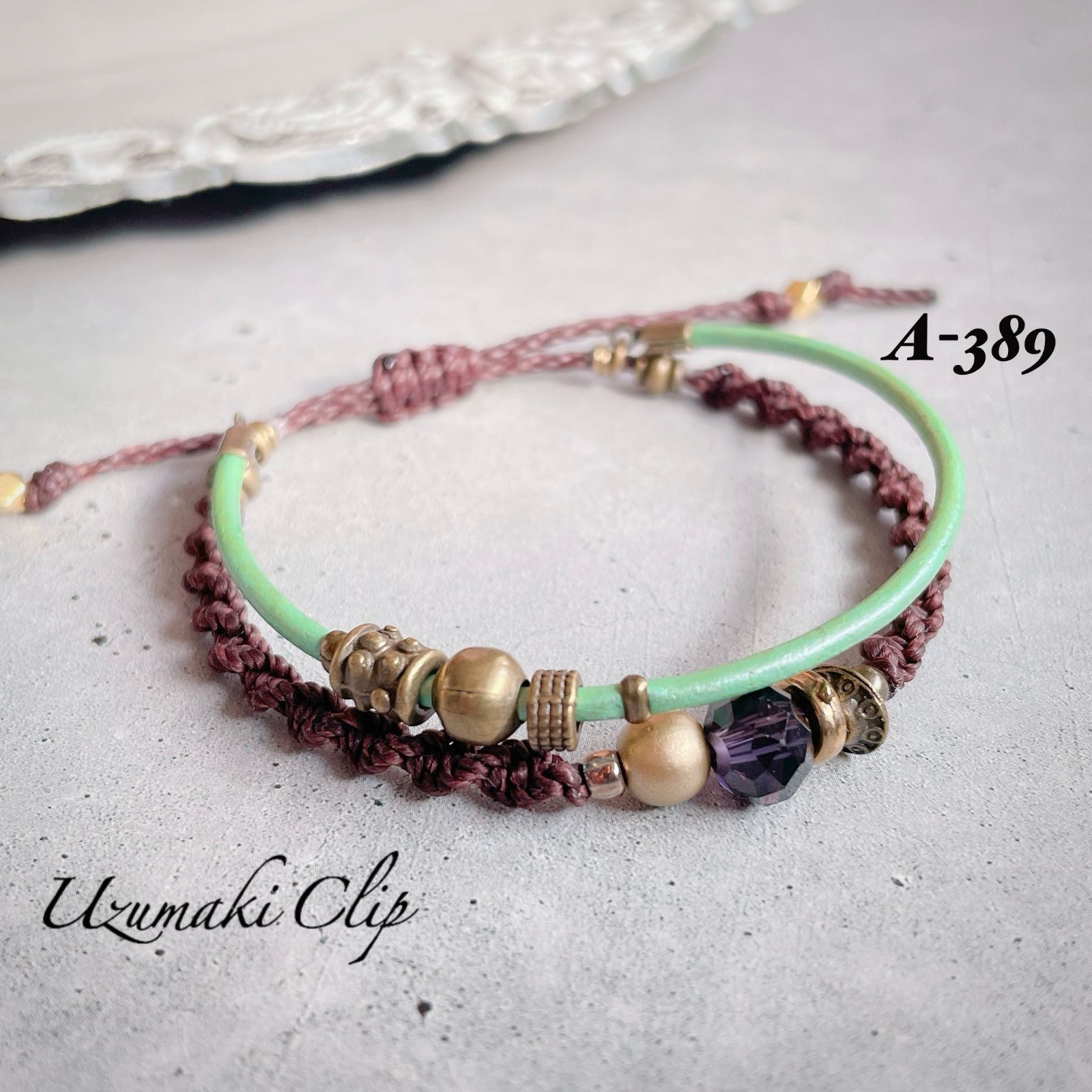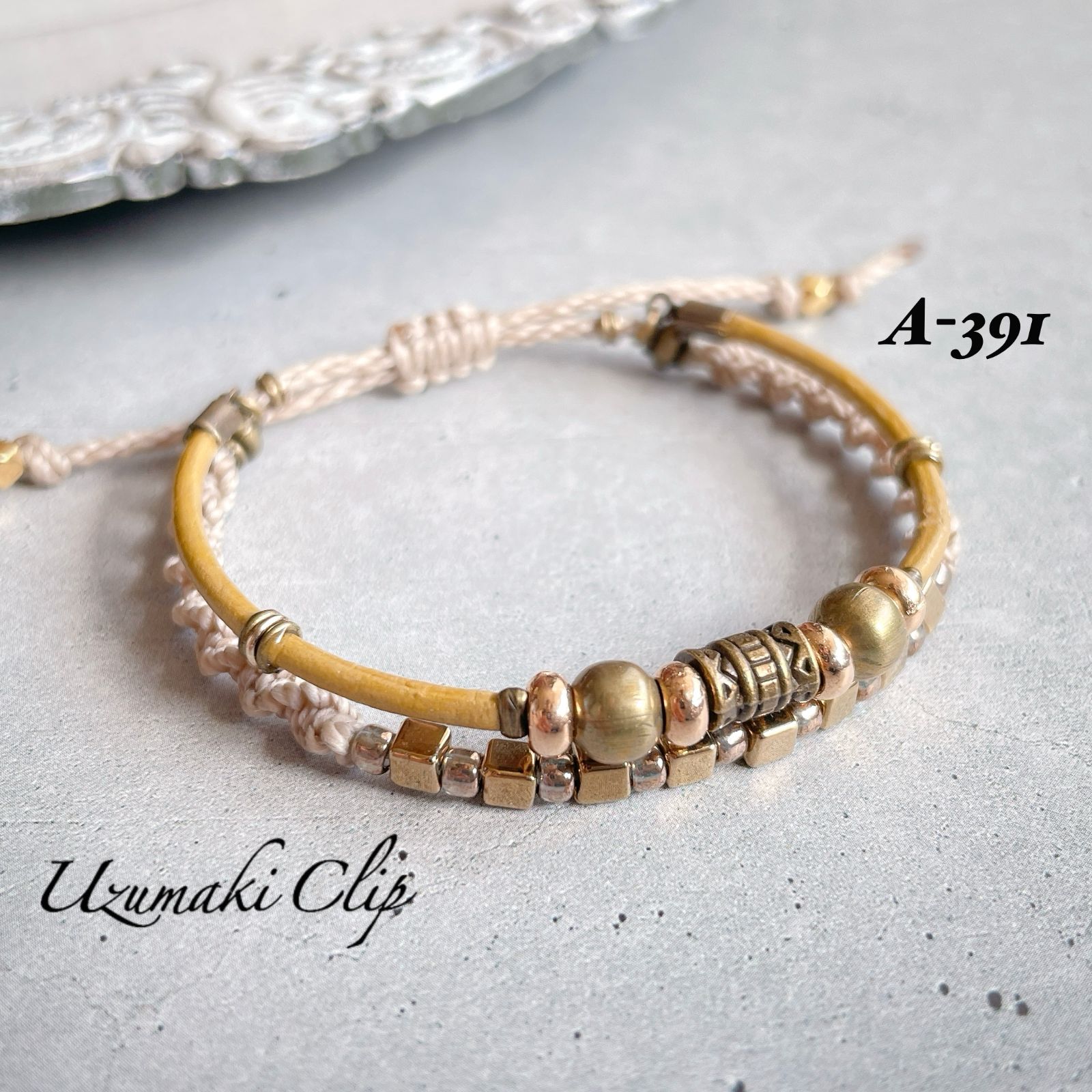 本革とワックスコードの2連ブレスレット【結重〜ゆいがさね〜】 A-③