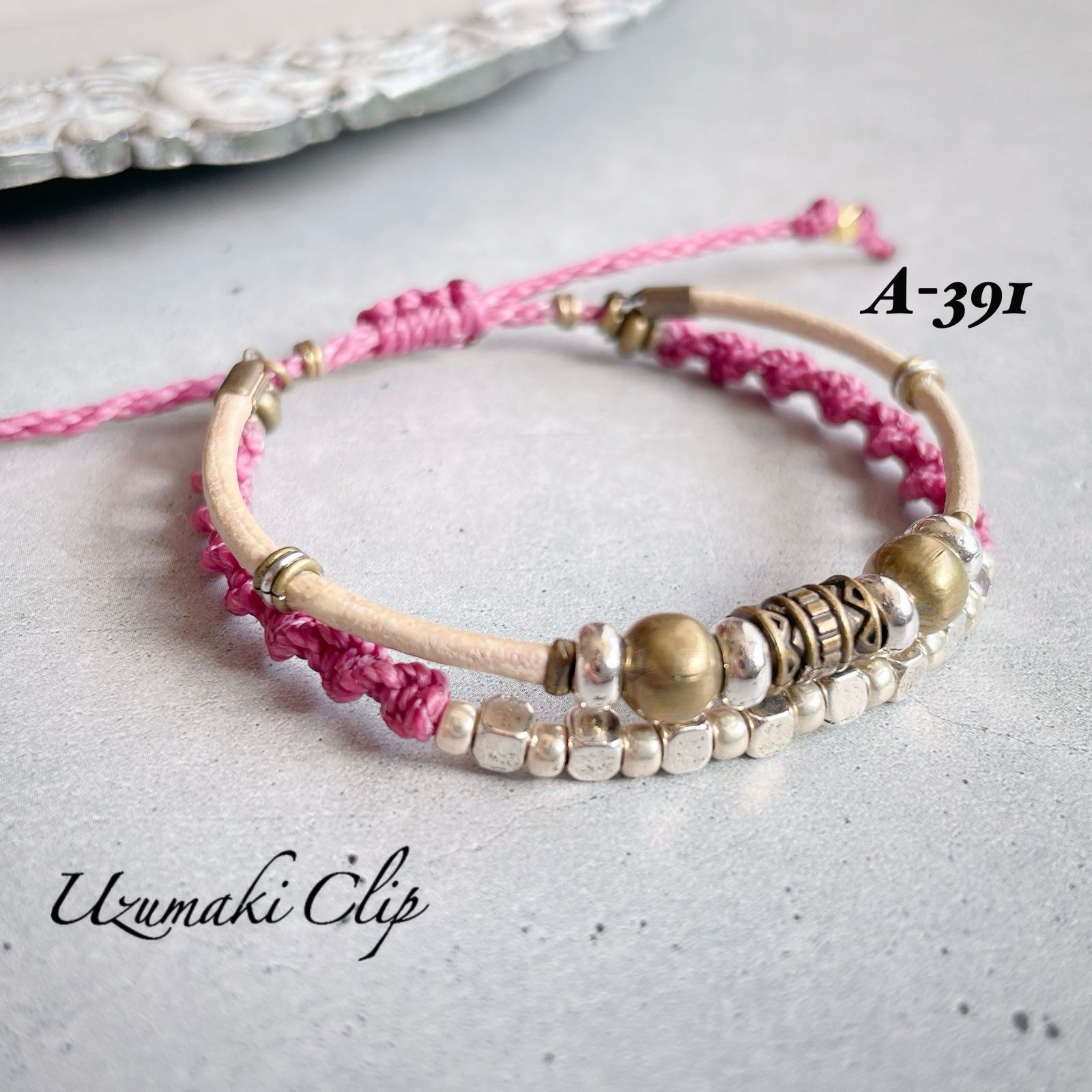本革とワックスコードの2連ブレスレット【結重〜ゆいがさね〜】 A-④