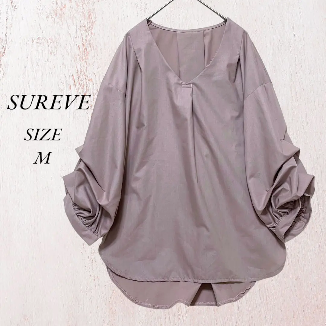 351 SUREVE 七分袖 ノーカラー ブラウス M ピンクベージュ くすみ