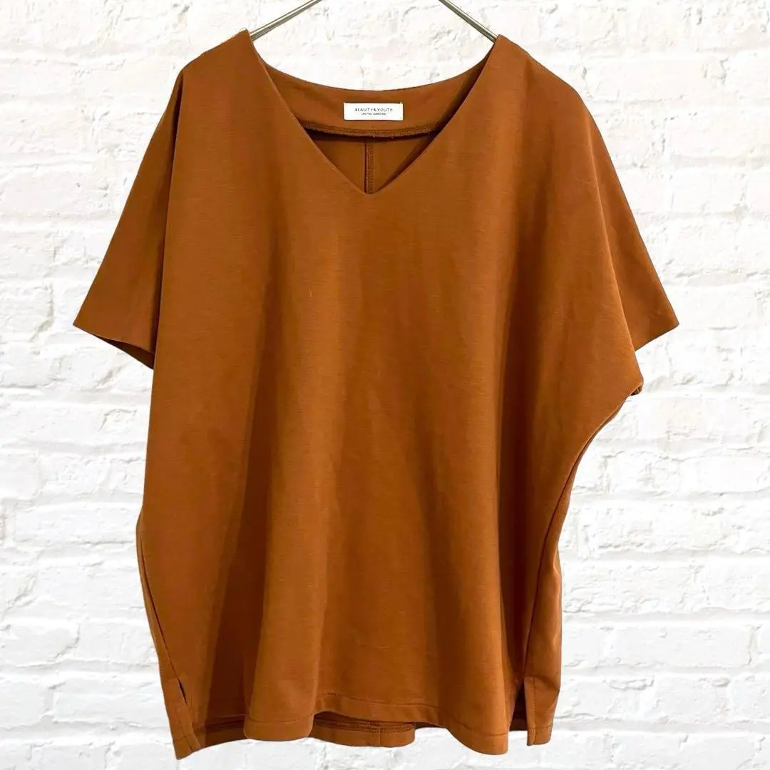 BEAUTY&YOUTH カットソー フレンチスリーブ Vネック スリット入