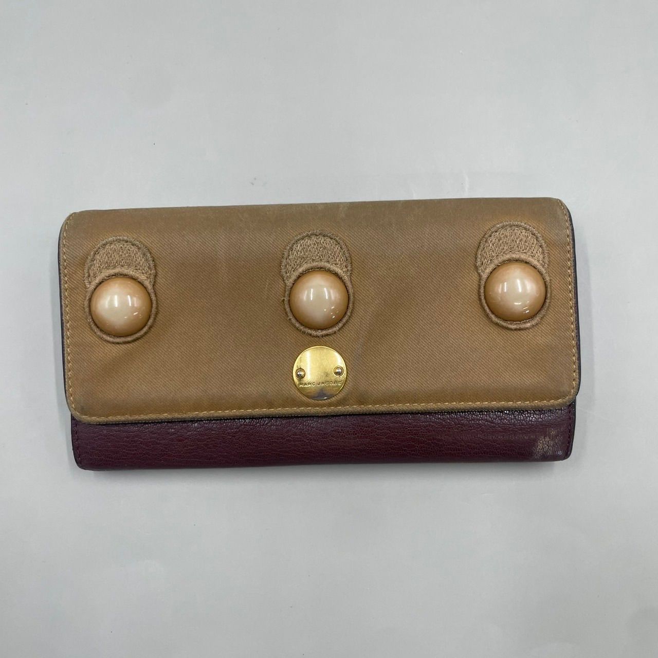 希少 MARC JACOBS マークジェイコブス 長財布 フラップ スタッズ ゴールド金具 レザー ボルドー