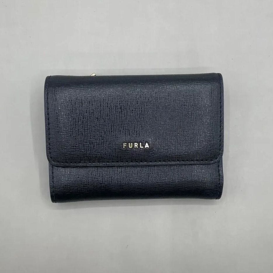 美品 現行モデル FURLA フルラ 折り財布 ロゴ ゴールド金具 レザー 黒 ブラック