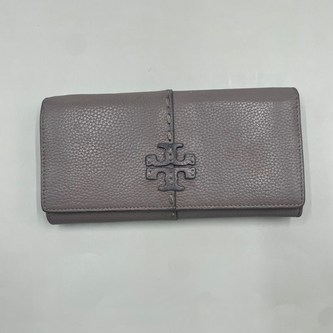 美品 現行モデル TORY BURCH トリーバーチ 長財布 フラップ ロゴ レザー グレー