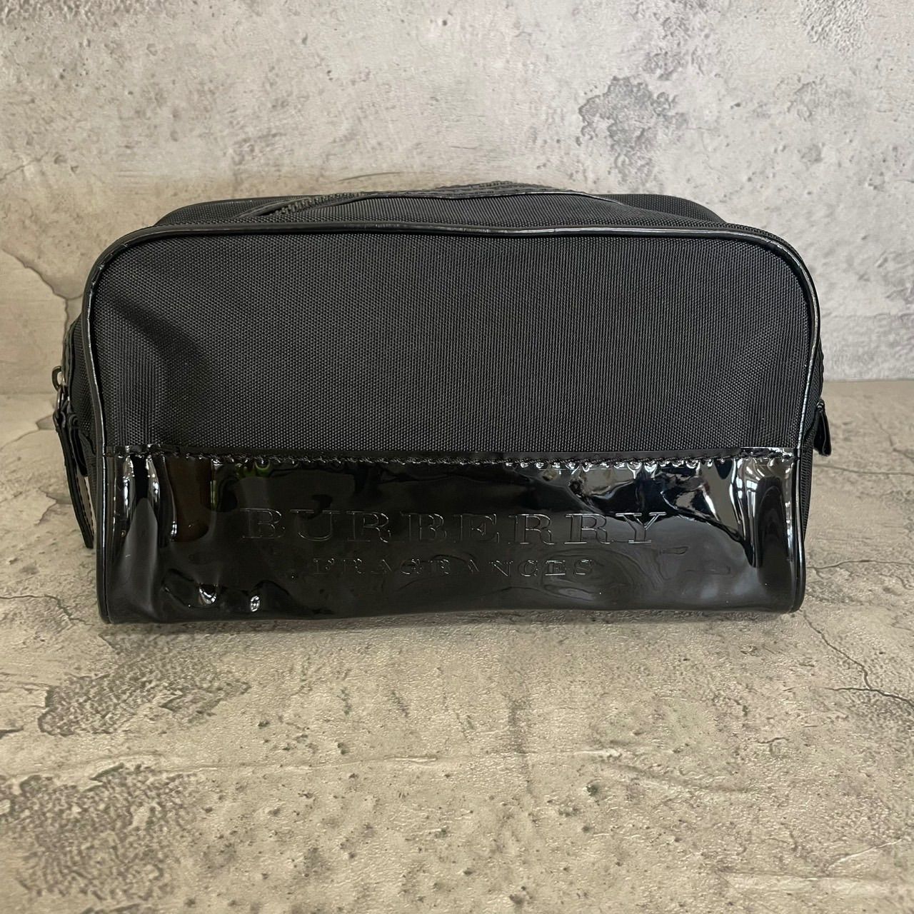 極美品 BURBERRY FRAGRANCES バーバリー マルチポーチ 化粧ポーチ 大容量 ロゴ型押し ナイロン エナメル 黒 ブラック