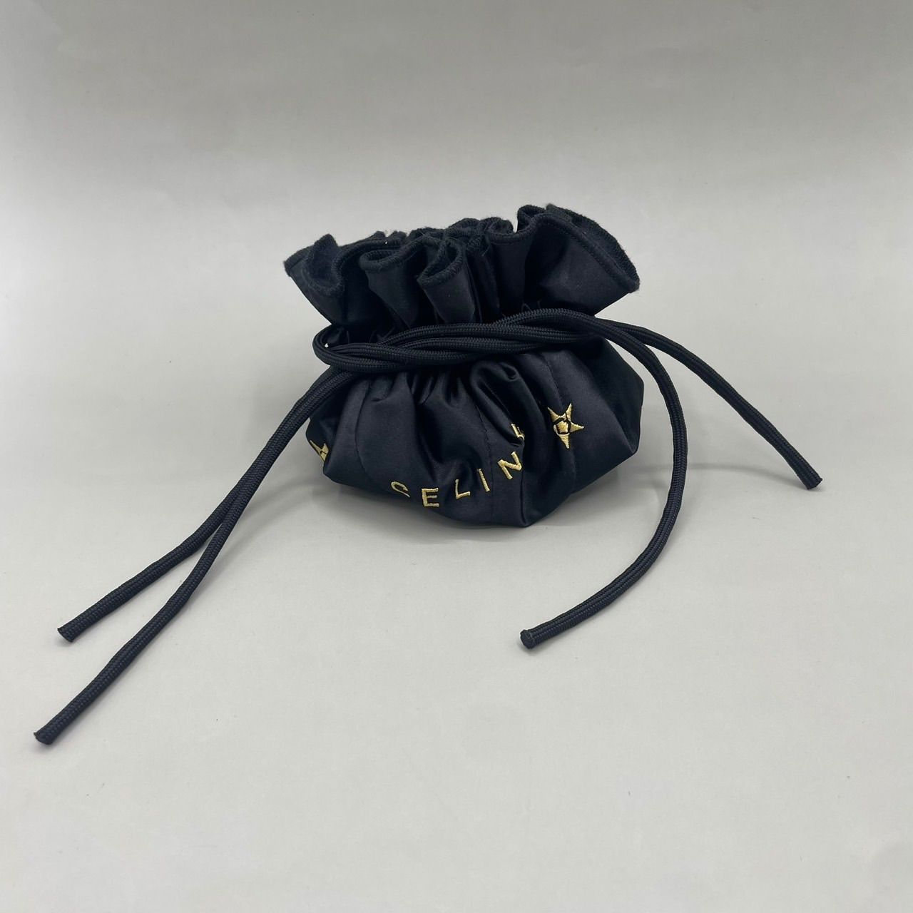 未使用級 CELINE セリーヌ 巾着 ポーチ ロゴ 星 刺繍 サテン生地 黒 ブラック