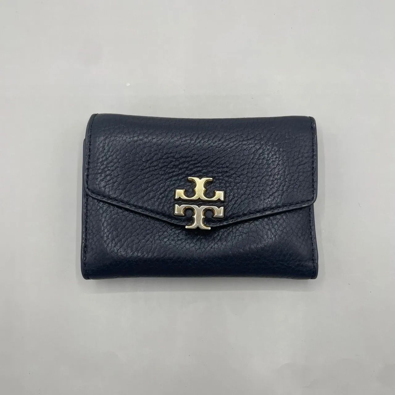 美品 現行モデル TORY BURCH トリーバーチ 二つ折り財布 ロゴ ゴールド シルバー金具 レザー 黒 ブラック