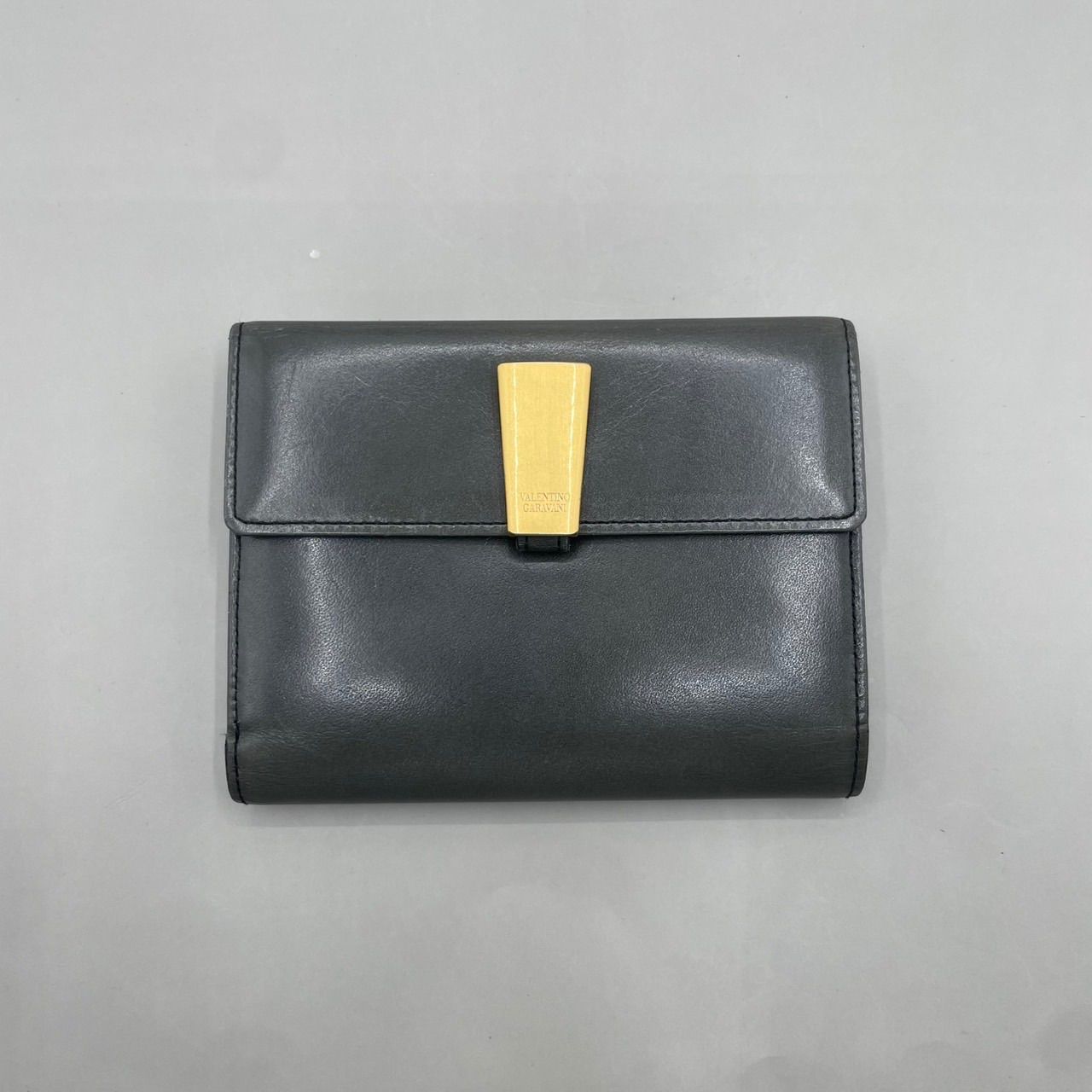美品 valentino garavani ヴァレンティノガラバーニ 二つ折り財布 ゴールド金具 レザー グレー