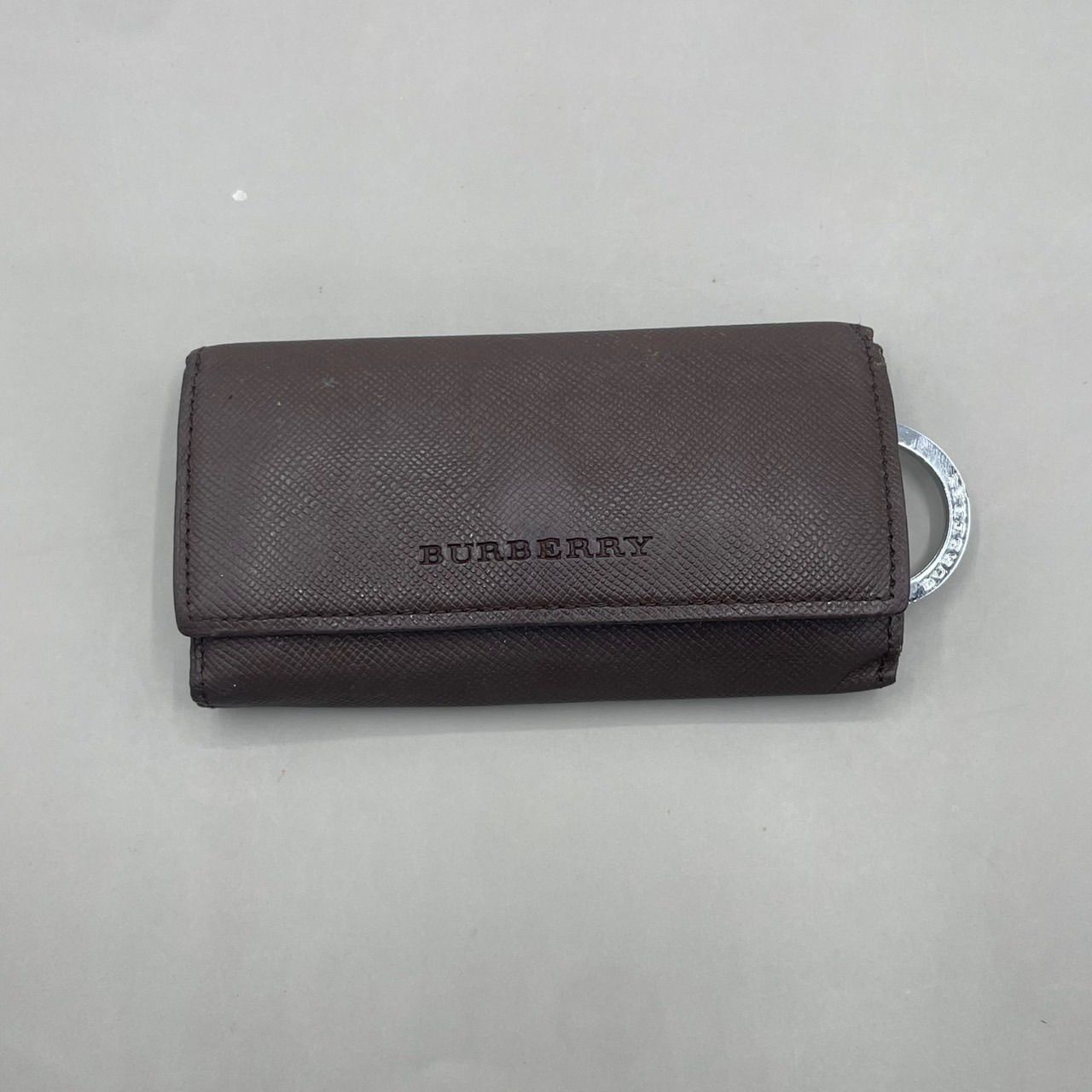 美品 BURBERRY バーバリー キーケース 4連 キーリング ロゴ型押し レザー 茶 ブラウン