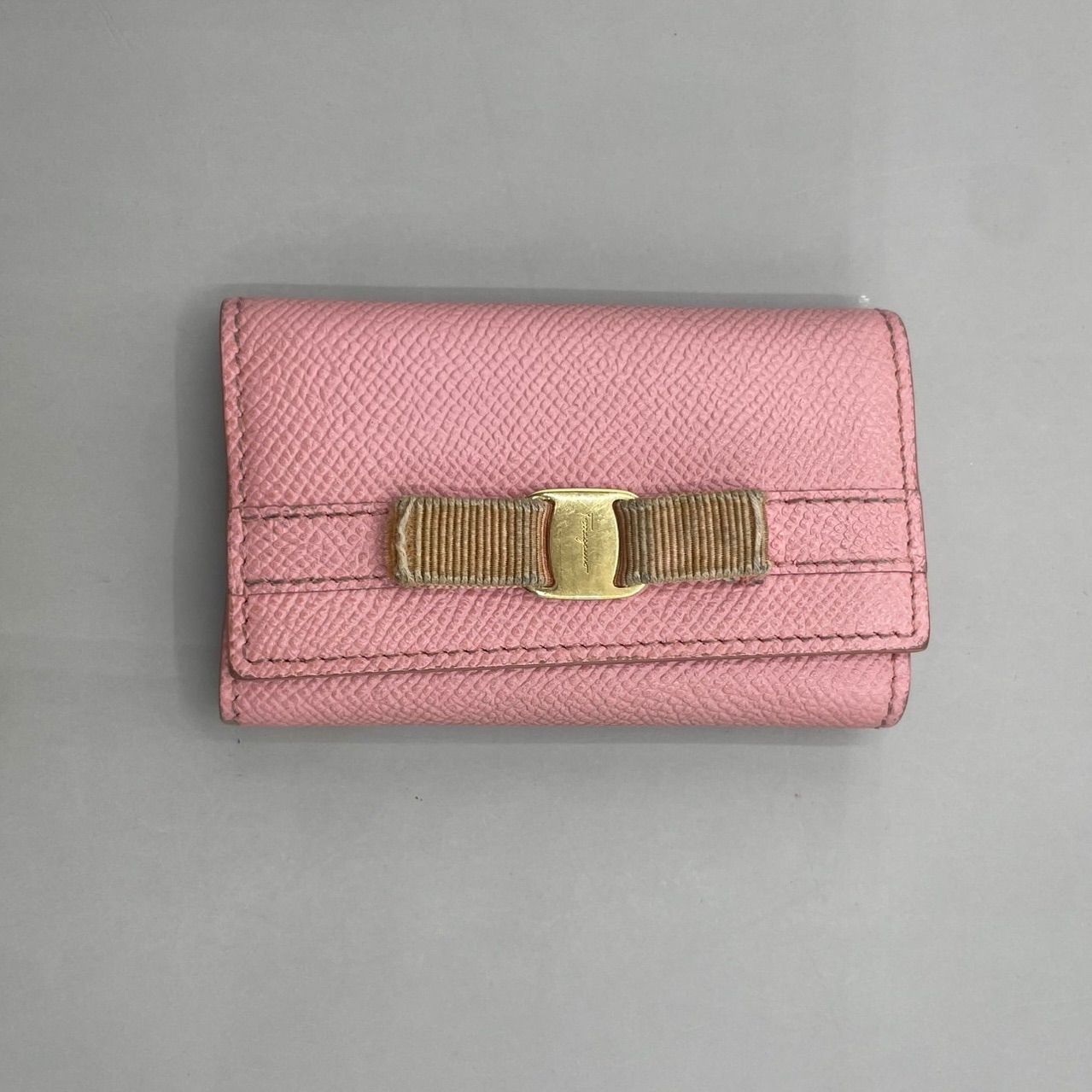 美品 Salvatore Ferragamo サルヴァトーレフェラガモ キーケース 6連 キーリング ヴァラ リボン レザー ピンク