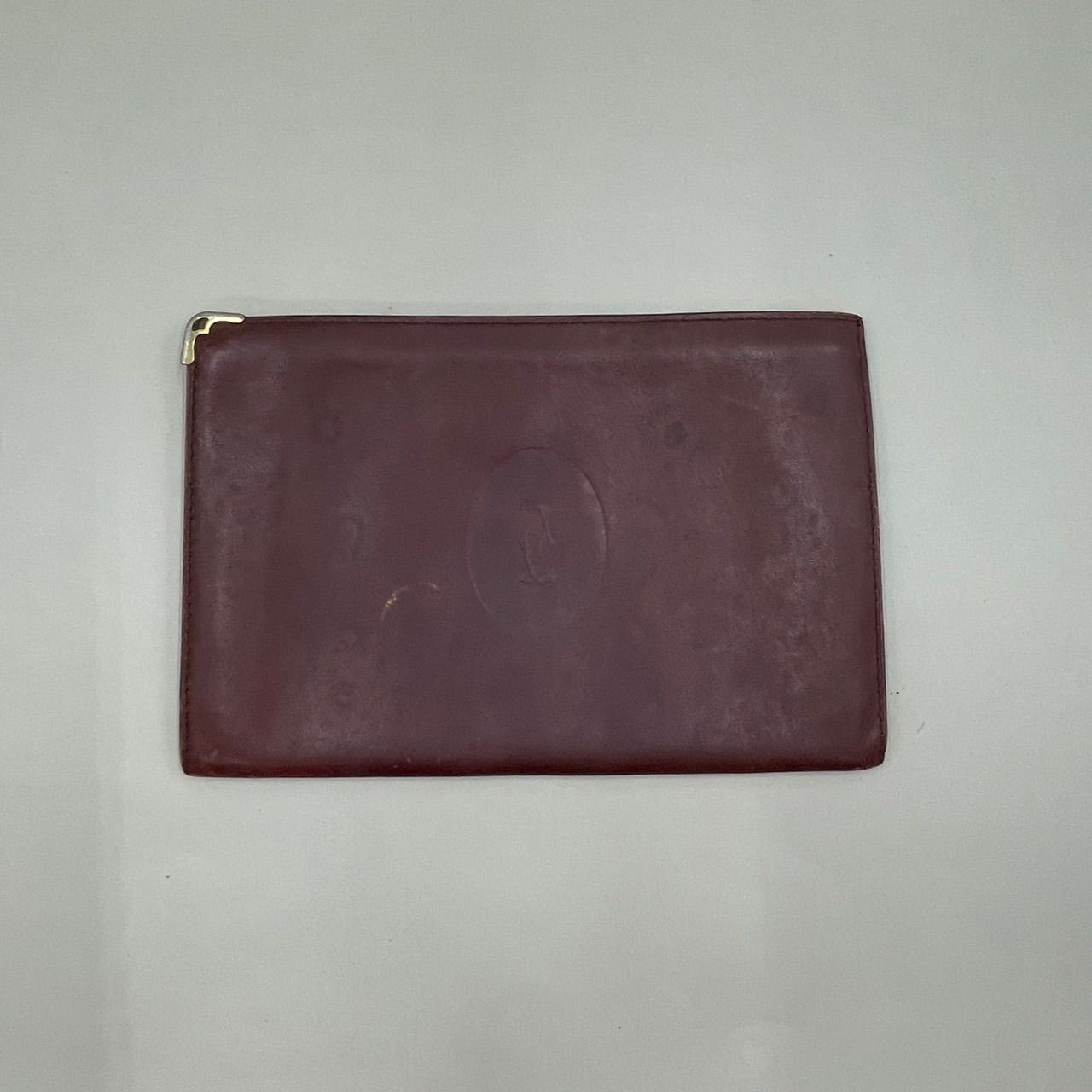 良品 Cartier カルティエ マルチポーチ マストライン ロゴ型押し ゴールド金具 レザー ボルドー
