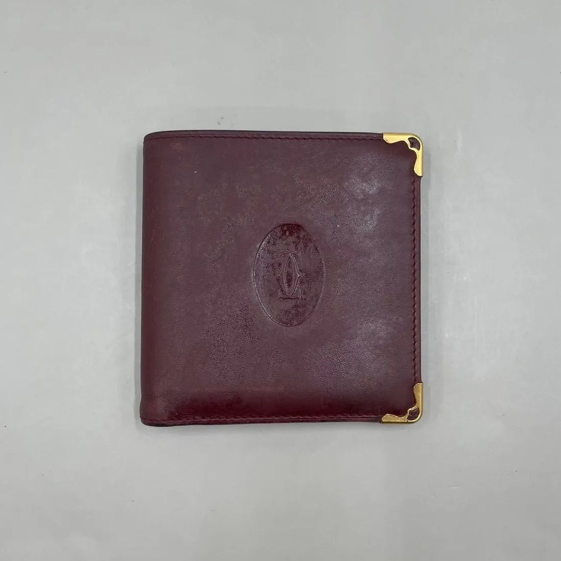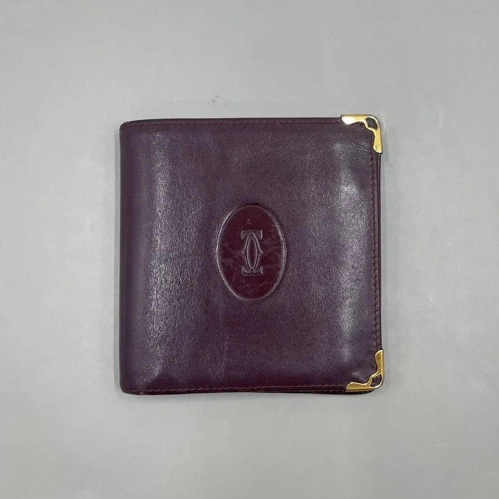 美品 Cartier カルティエ 二つ折り財布 マストライン ロゴ型押し ゴールド金具 レザー ボルドー