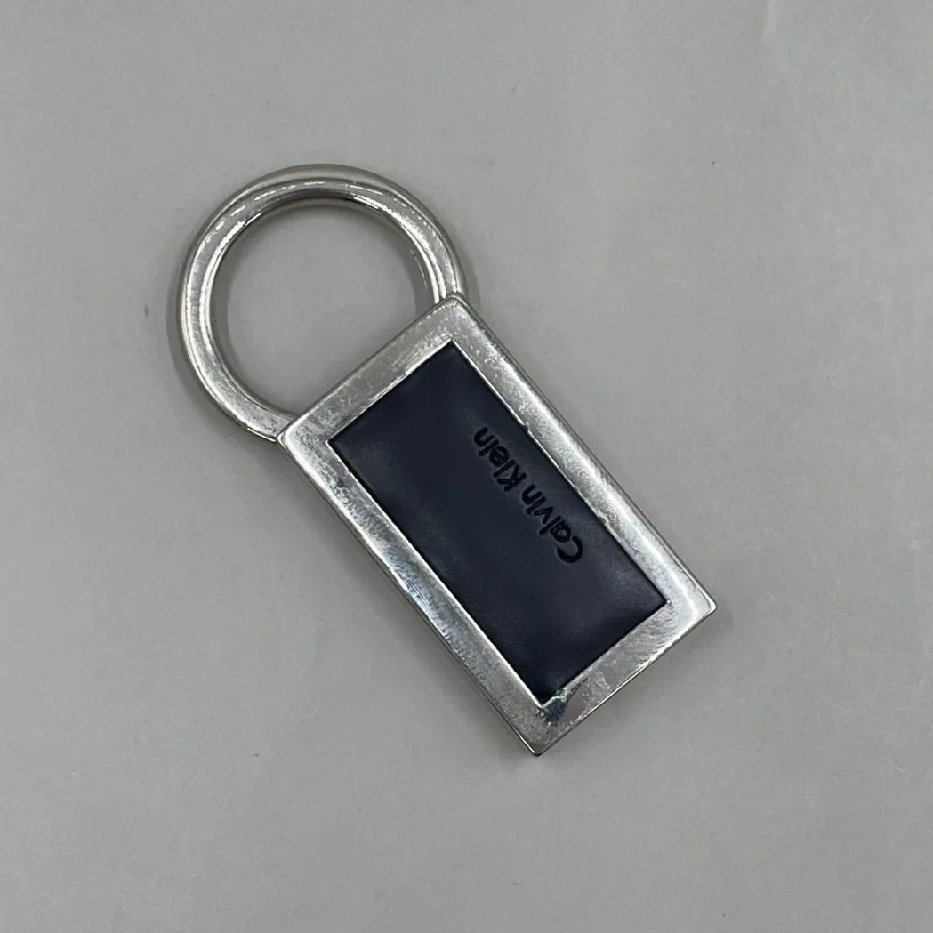 未使用級 訳あり Calvin Klein カルバンクライン キーホルダー キーリング バッグチャーム シルバー レザー 黒 ブラック