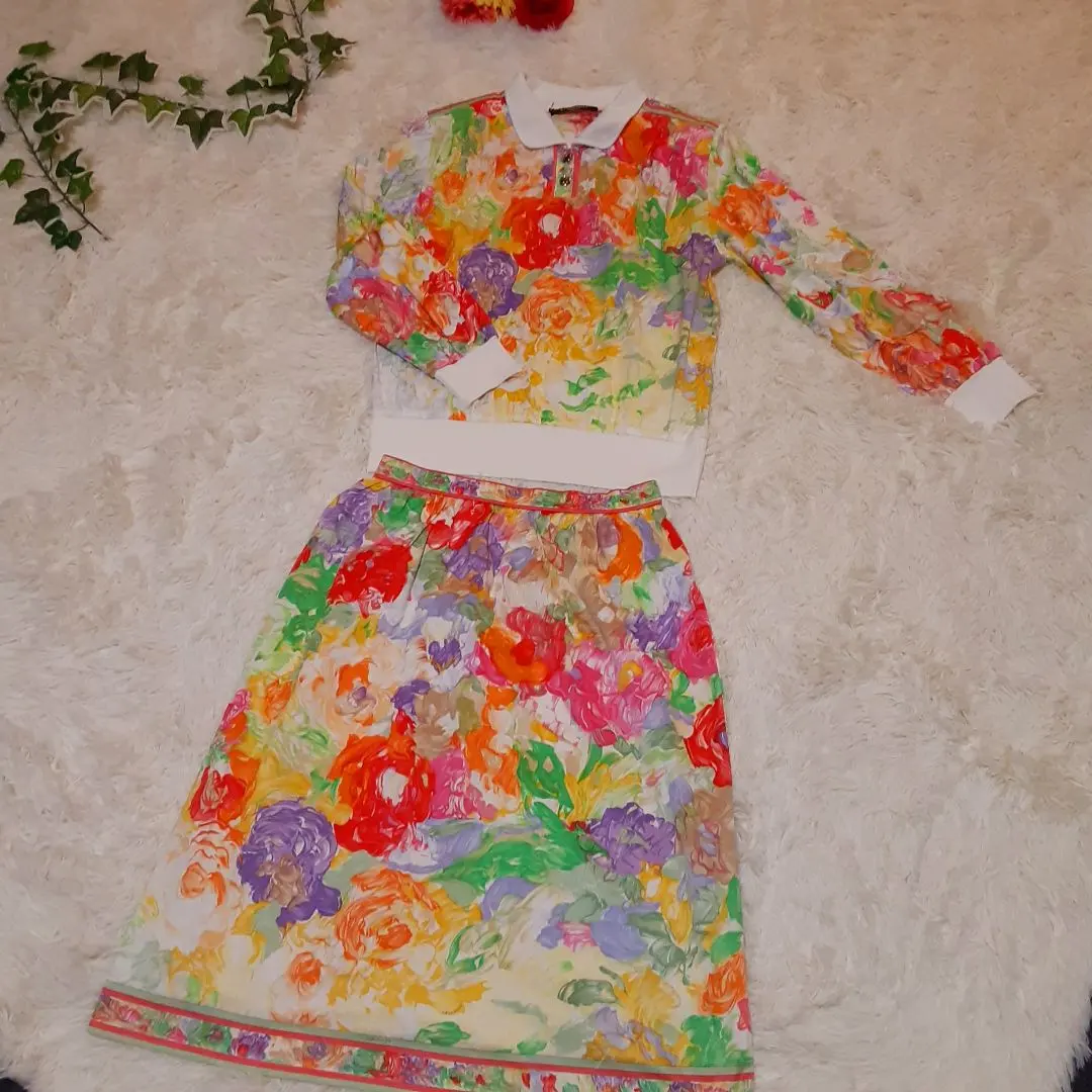 REONARD レオナール 花柄 セットアップ ワンピース 肩パットあり