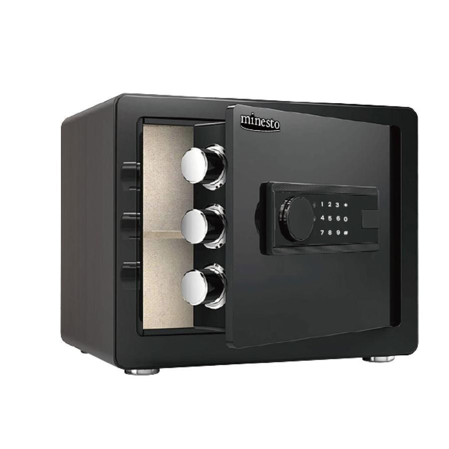 保管庫 金庫 緊急キー テンキー式 盗難防止 防犯 家庭用 小型 業務用 店舗用 ホテル 旅館 振動警報 壁付け アンカーボルト付き 30cm ブラック