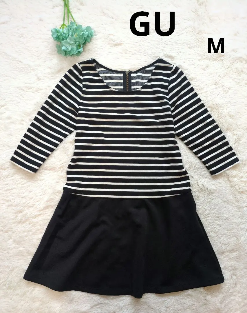GU ストライプ 七分袖ワンピース チュニック ペプラム M