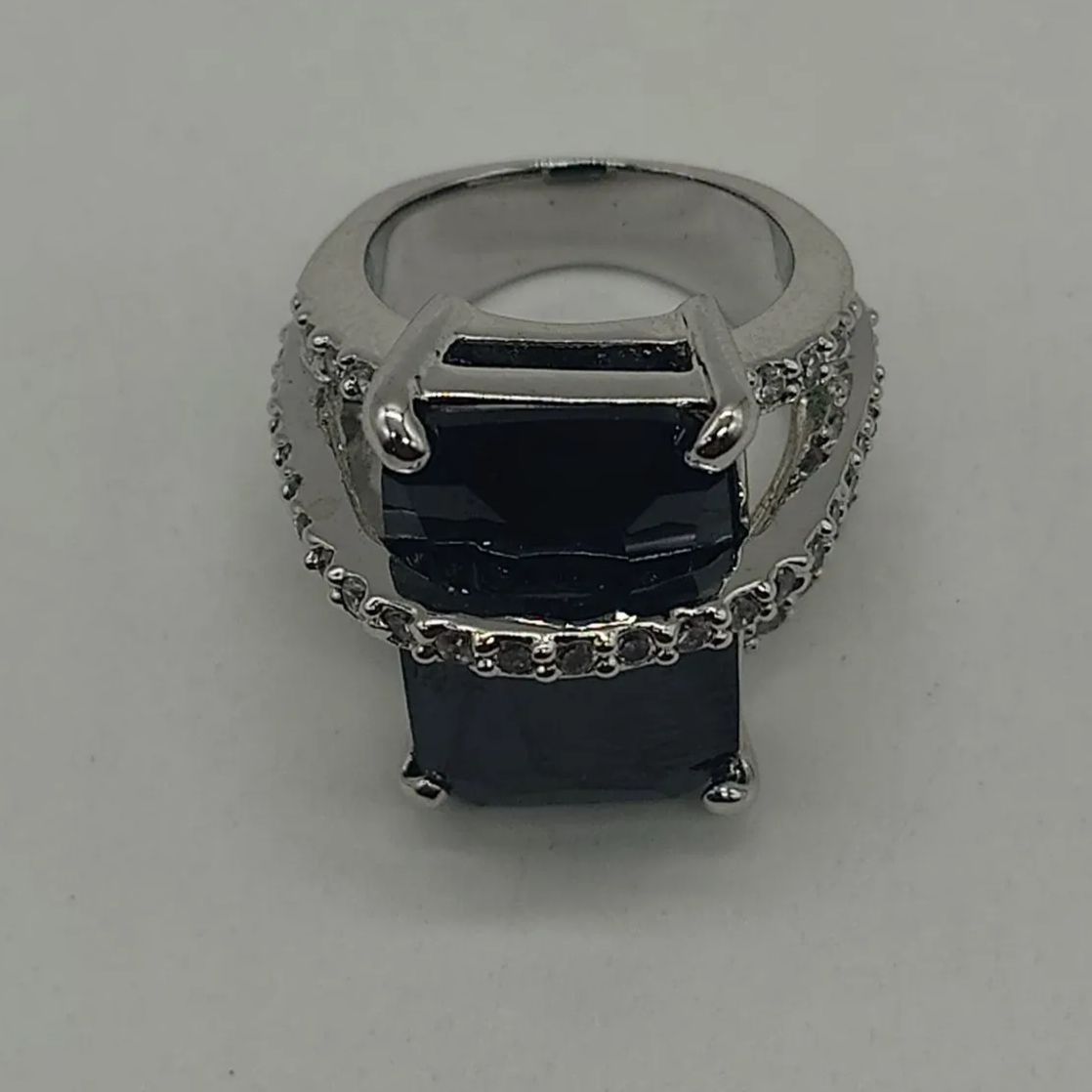 ブラックストーンリング レディース シルバー色 ドレス系2FM068
