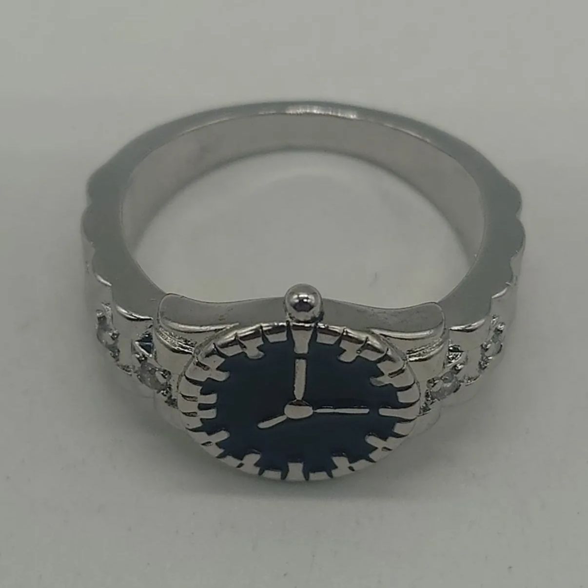 時計モチーフリング シルバーブラック レディース インポート 韓国系 レトロ 2FM069