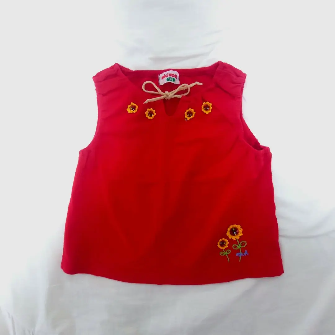 【日本製】ミキハウス 女の子 ロゴ&向日葵刺繍 タンクトップ 100cm