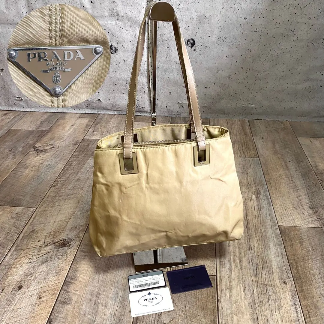 正規品☆プラダ テスートナイロン トートバッグ 三角ロゴ ハンドバッグ ベージュ