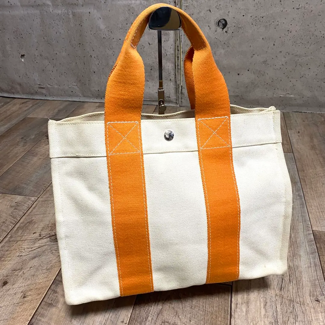 本物☆エルメス ボラボラ PM キャンバス トートバッグ ベージュ ハンドバッグ