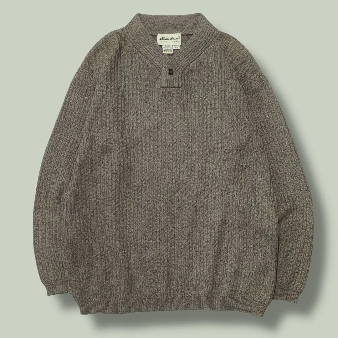 90s Eddie Bauer ショールカラー ヘンリーネック コットンニット