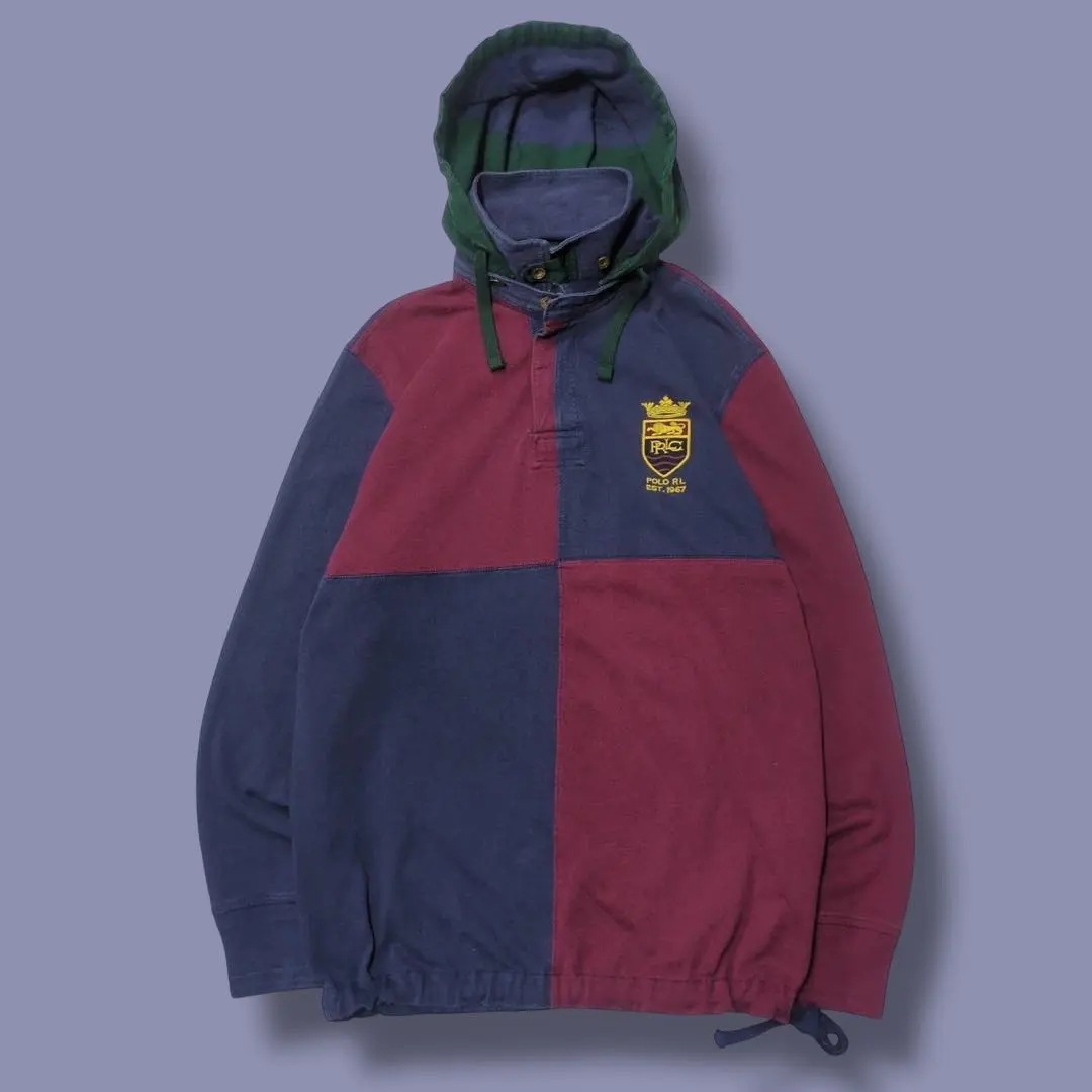 90s Ralph Lauren フード付きラガーシャツ チンスト ナンバリング