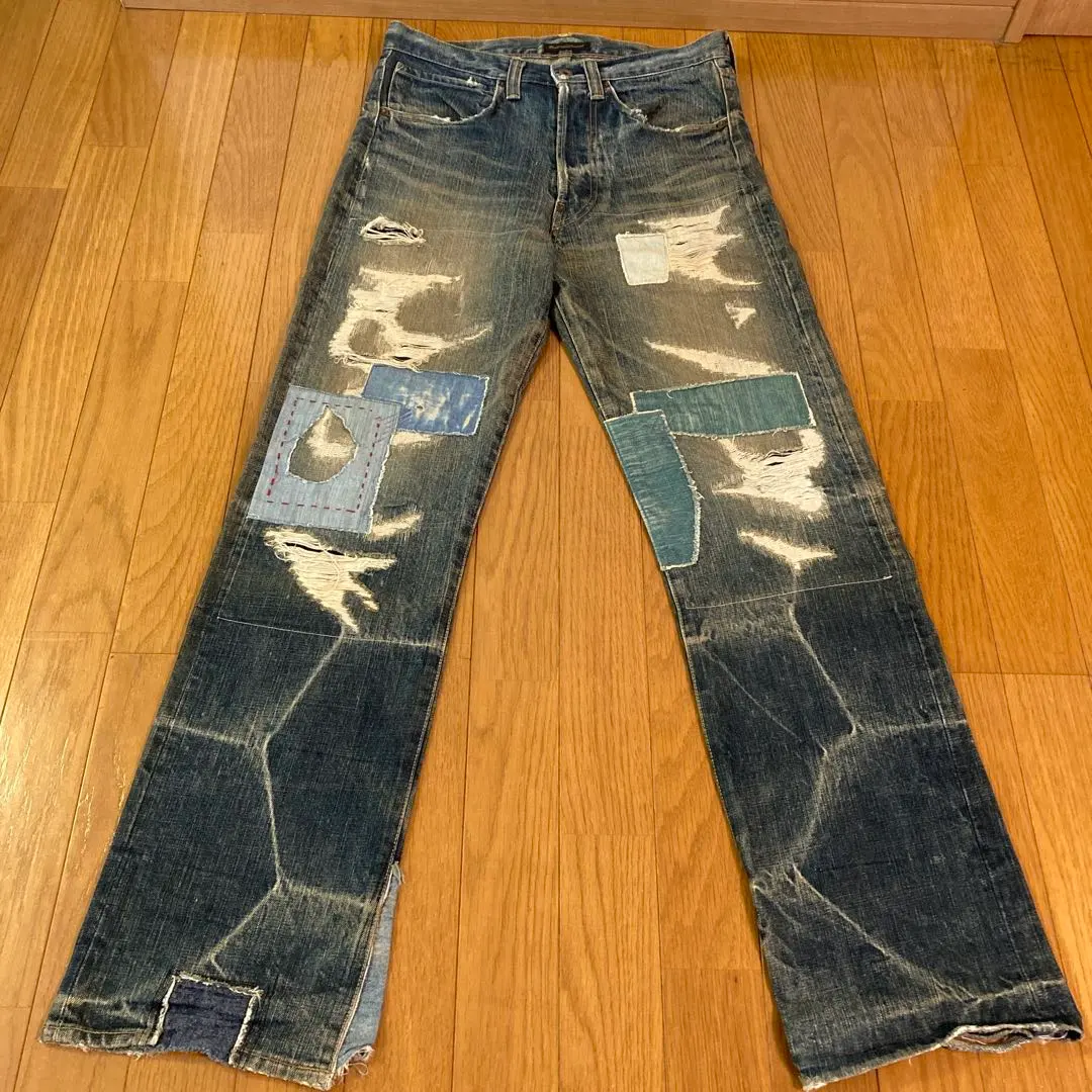 お値下げ。00s VICTIM パッチワーク ブーツカットデニム ジーンズ M