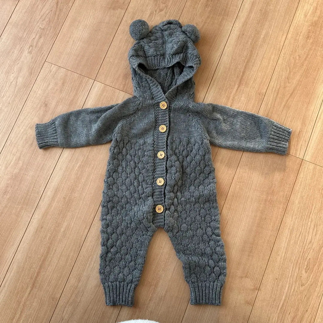グレー フード付きロンパース 73cm