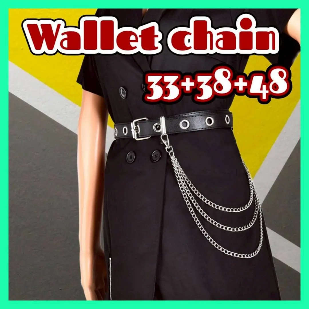 ロング バンド V系 人気 ウォレットチェーン パンク 3連 シルバー