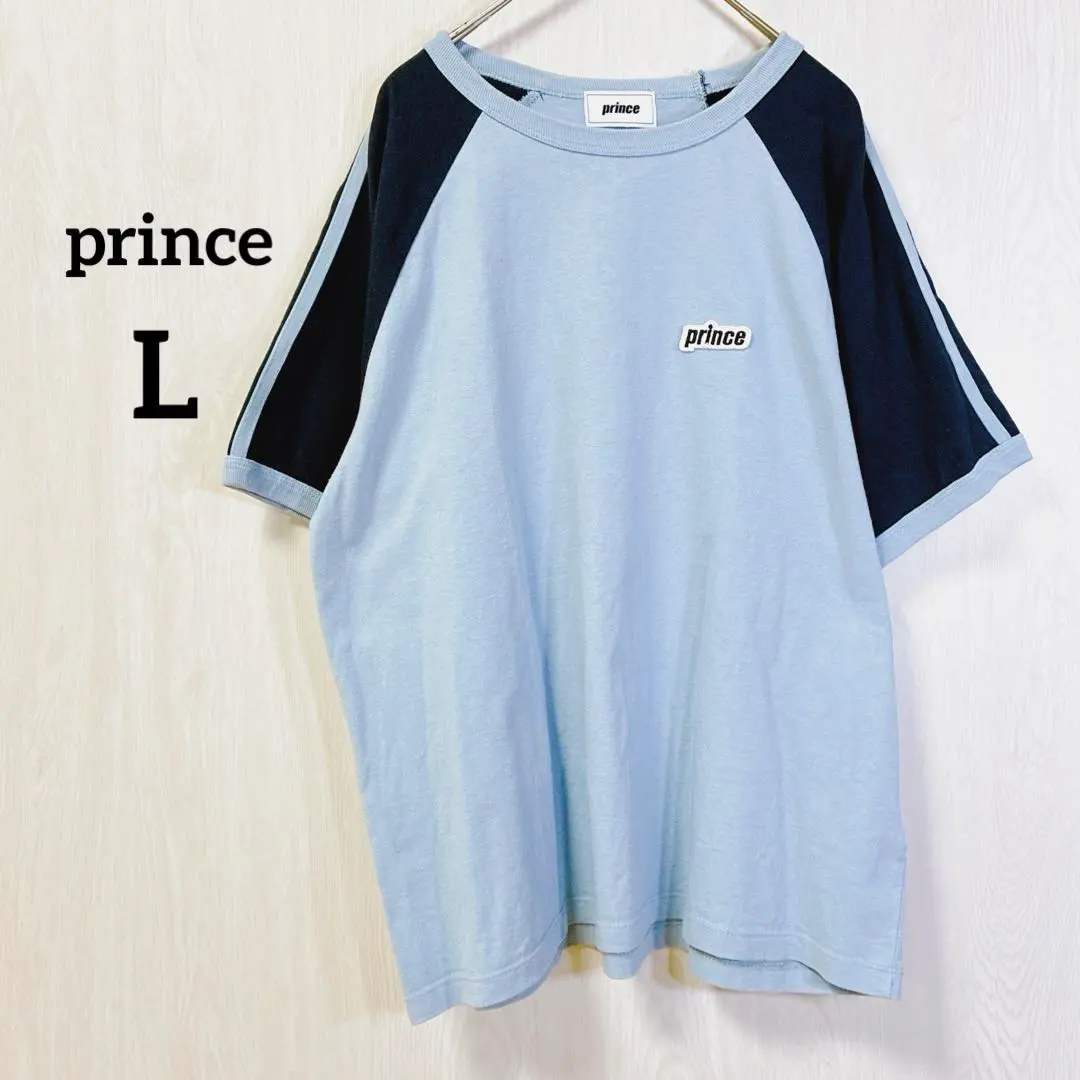 prince ラグラン Tシャツ 半袖 水色×ネイビー F レトロ スポーティー