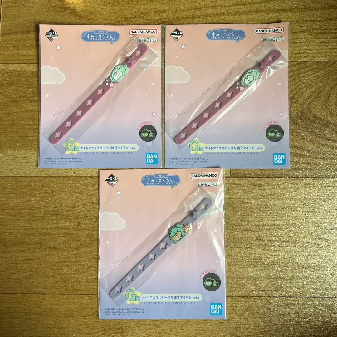 BANDAI すみっコぐらし 一番くじ 蛍光シリコンバンド 3個セット