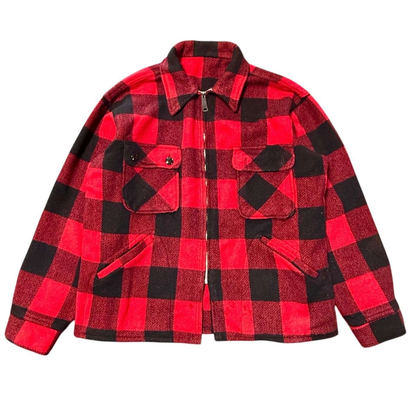 60s ヴィンテージ ウール ジャケット CPO ジップアップ バッファローチェック 赤