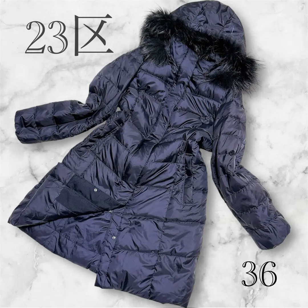 極美品 23区 洗える ダウンコート ジャケット ラクーンファー ネイビー S
