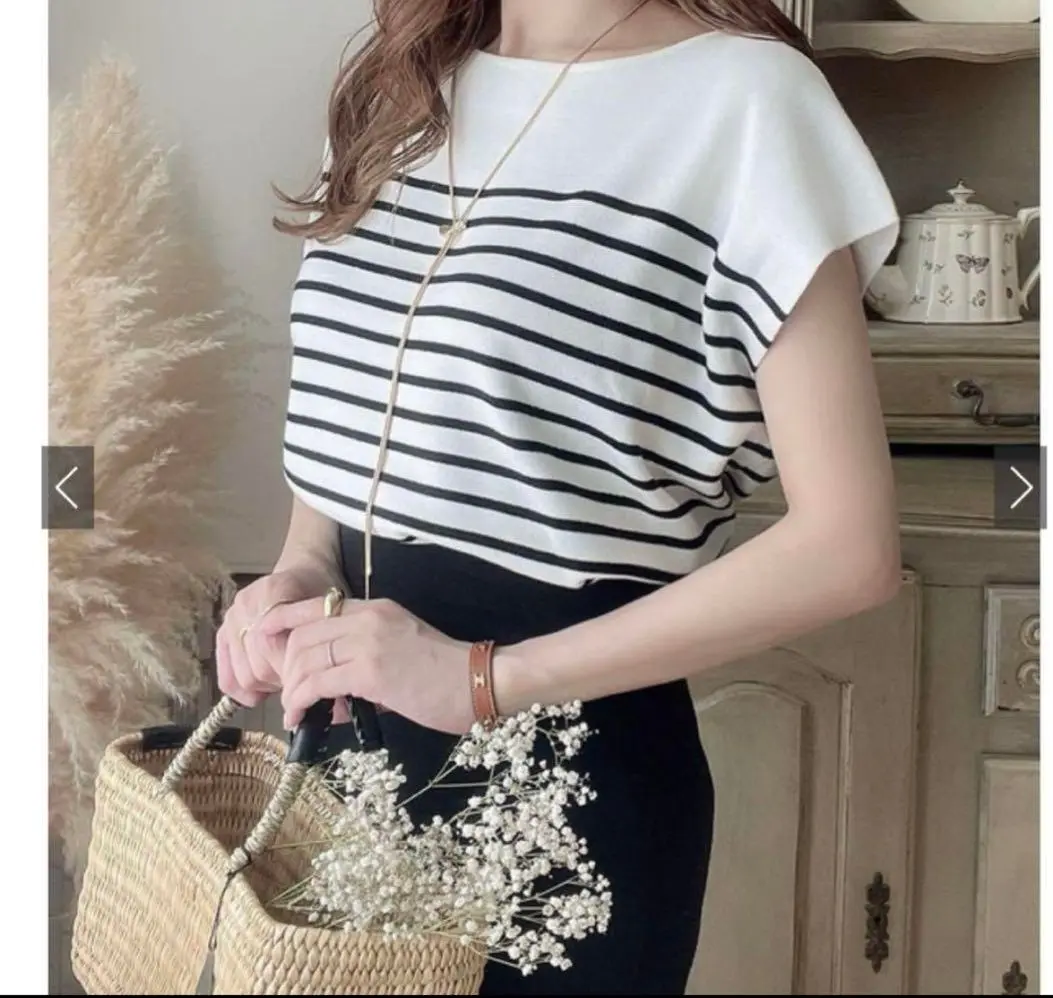 【GRL】ボーダー柄フレンチスリーブニットトップス[kz222]