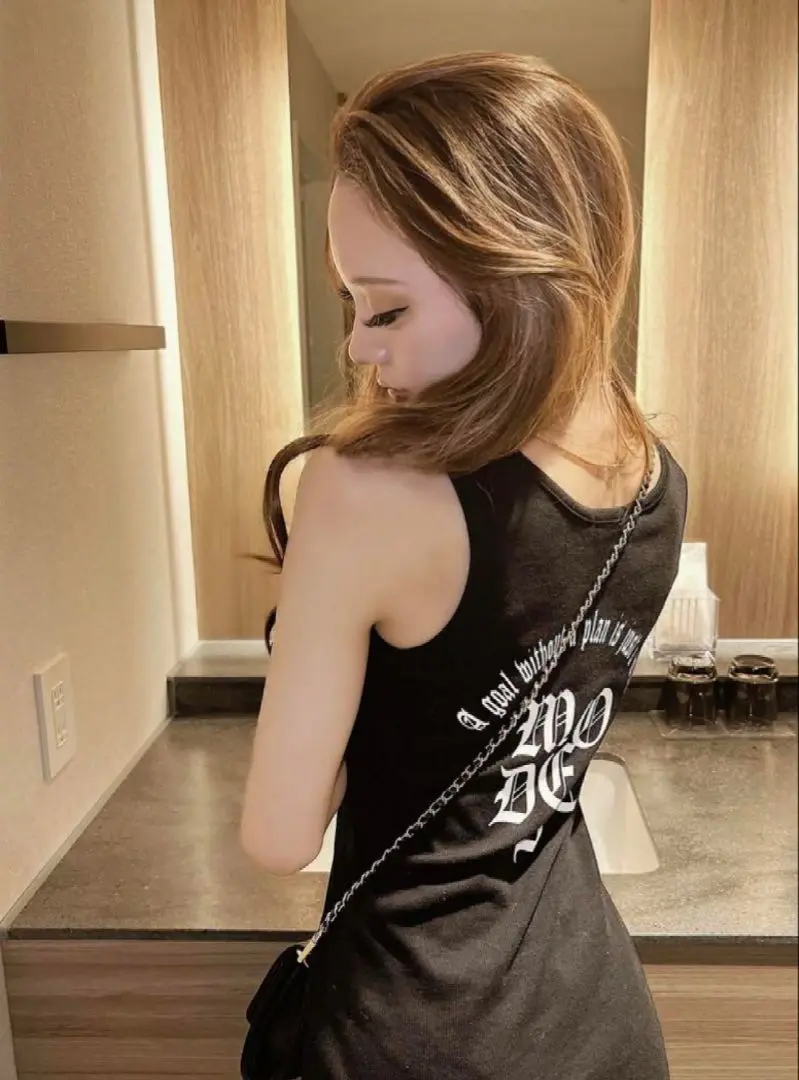 【EMODA】シャギーフードニットタンクトップ ブラック