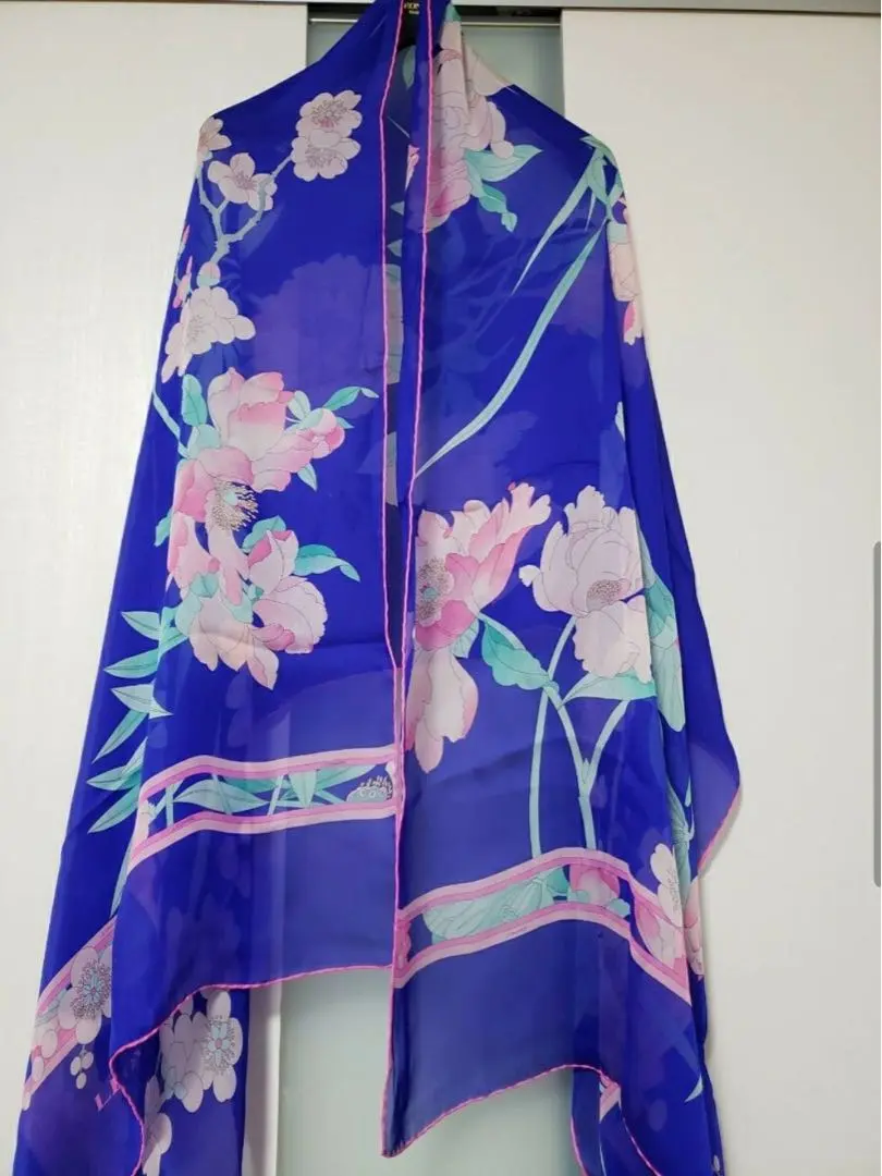 【三連休特価】 ☆極美品☆ レオナール 春色 シースルースカーフ 縦長