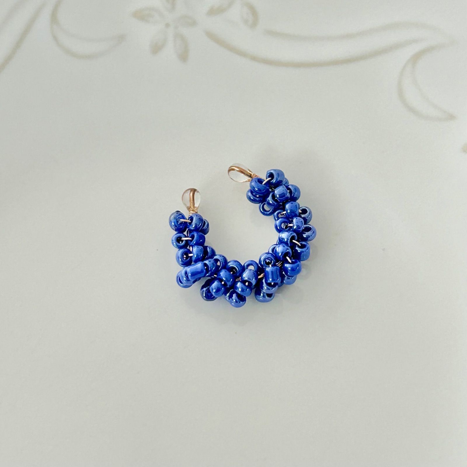 光沢ロイヤルブルーのつぶつぶビーズイヤーカフ