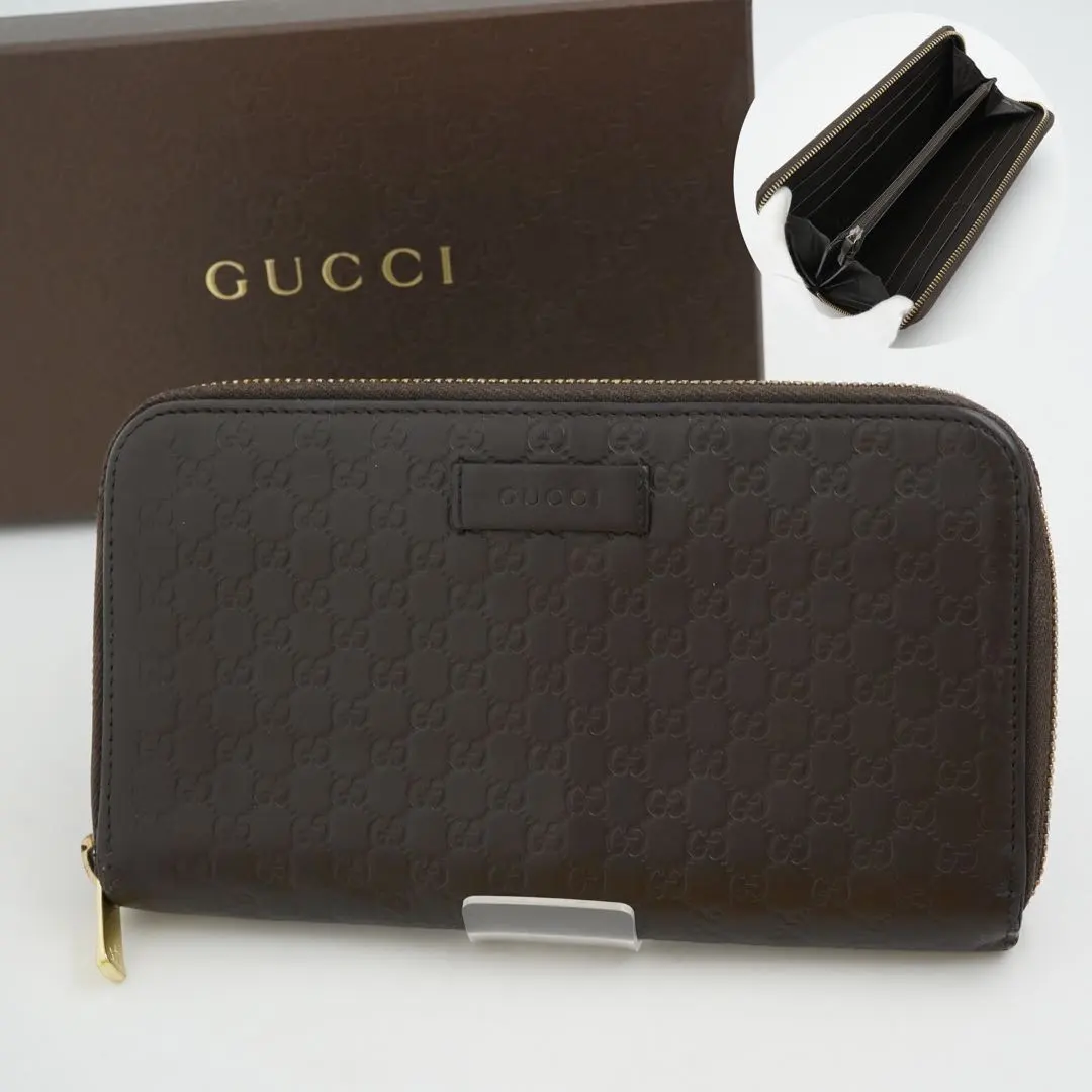 ✨極美品✨ グッチ 長財布 マイクロシマ GG ラウンドジップ レザー ブラウン